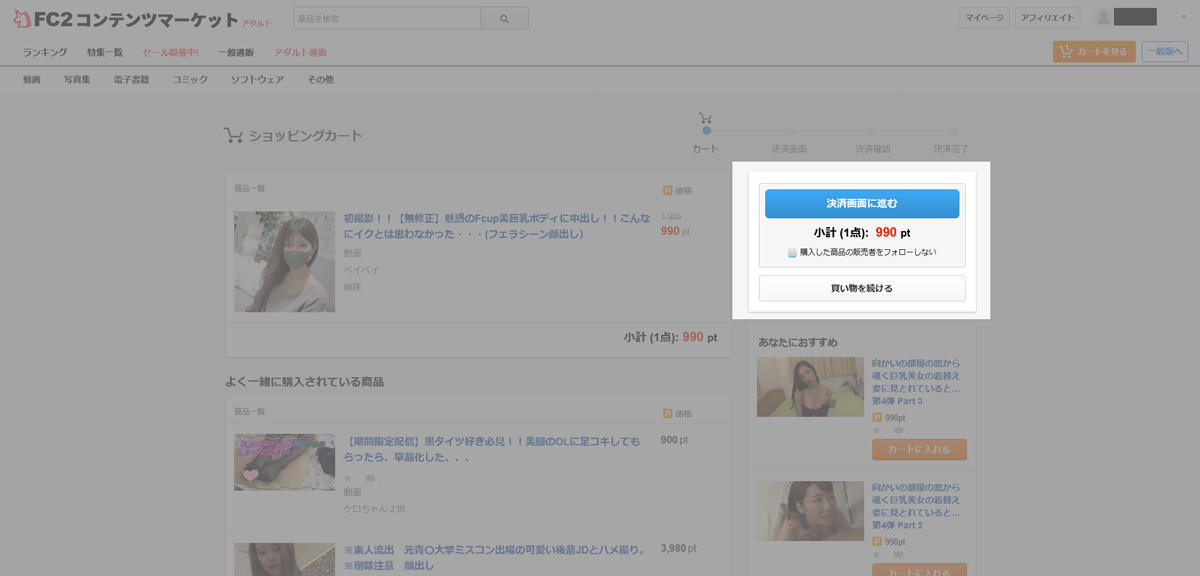 ※管理人はFC2で購入したポイントがあるのでそのポイントでアダルト動画を購入しました。