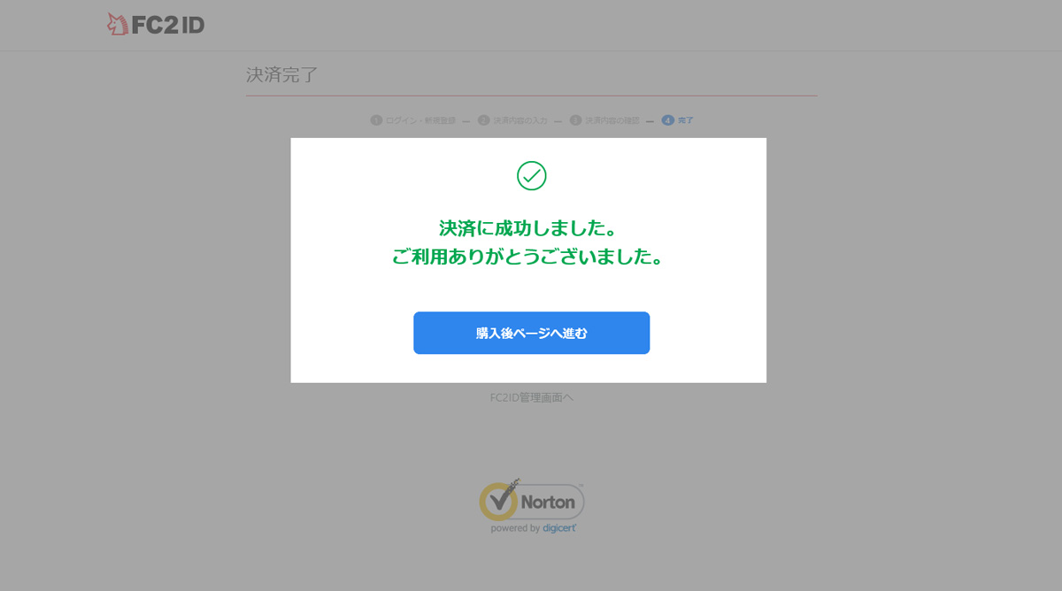 購入が完了すると「決済に成功しました。ご利用ありがとうございました。」と表示されます。「購入後ページへ進む」をクリックします。